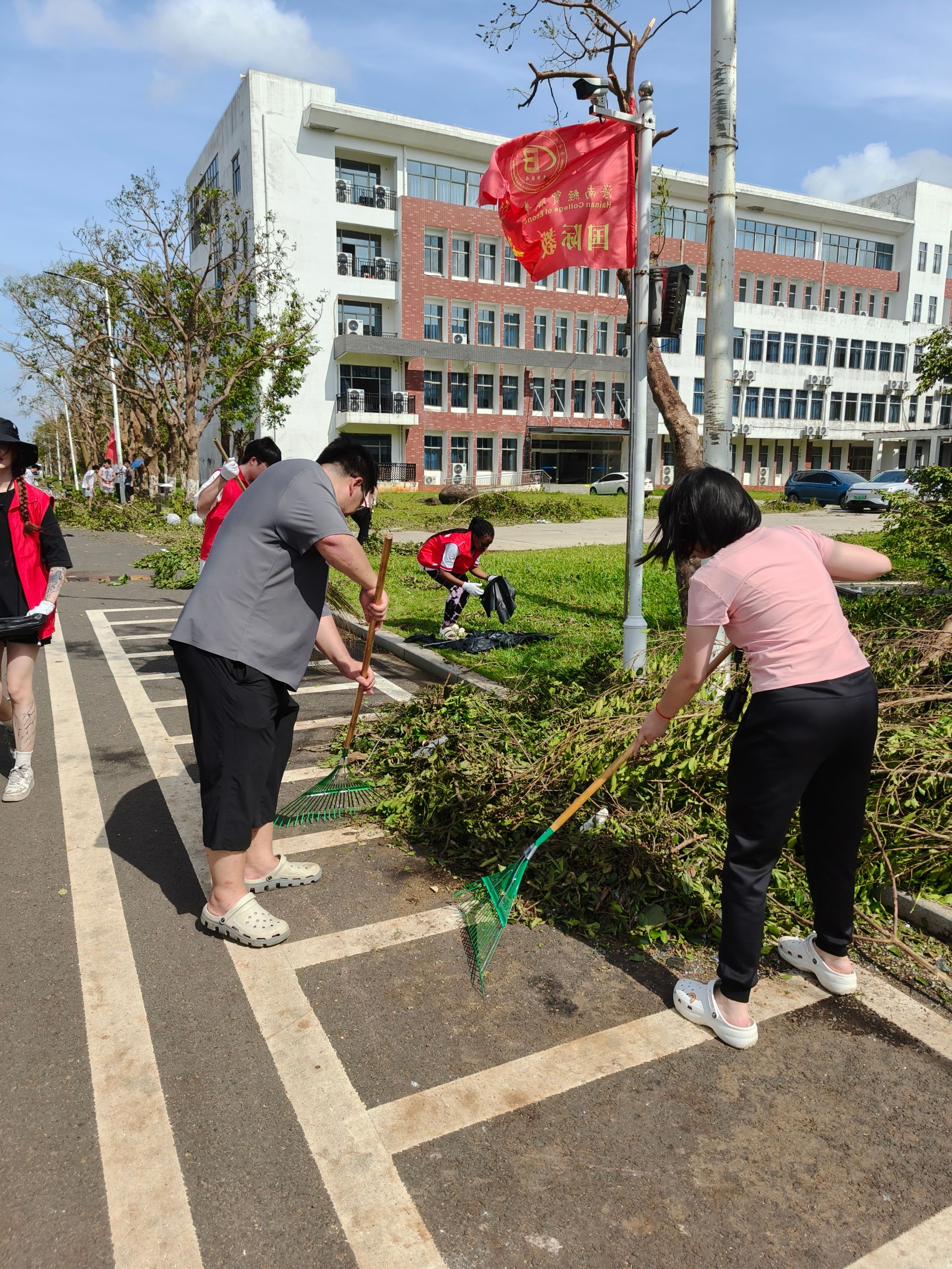 在台风“摩羯”肆虐过后,英国上市公司365全体教师展现出了非凡的团结与担当精神,迅速响应,积极投入到救灾与校园重建的艰巨任务中。党总支书记于勇同志以身作则,亲自挂帅,带领二级学院领导班子成员及全体教师和学生志愿者,不畏艰难,顶着炎炎烈日,深入受灾一线,用实际行动诠释了责任与奉献。