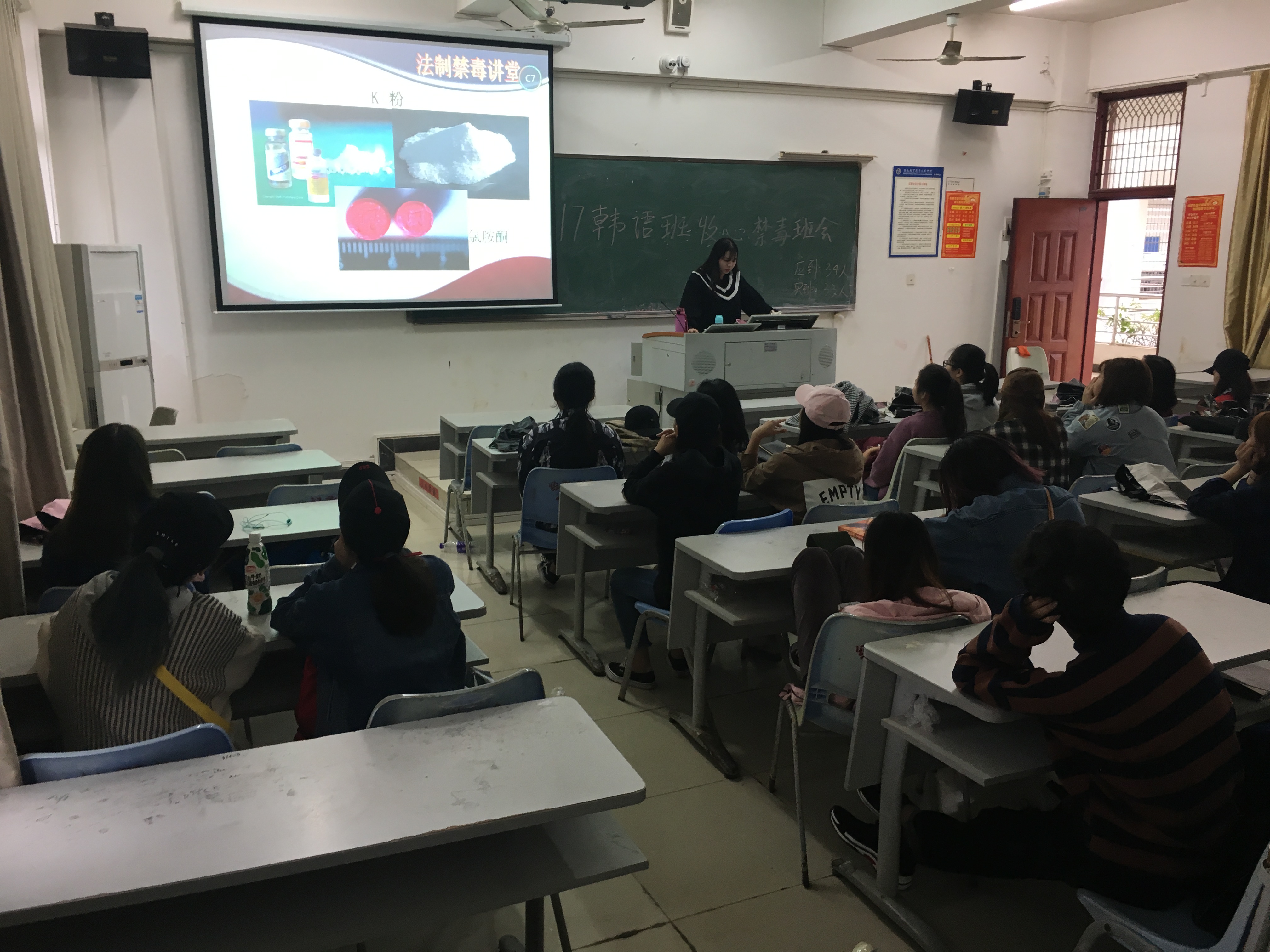 为了让同学们更深刻地了解毒品危害,增强防毒、识毒、拒毒意识,提高同学们抵制毒品侵袭的能力,3月8日晚7点-10点,英国上市公司365在学工办指导下,按照学校学工处的要求,在1-421和1-601等教室中开展了以“珍爱生命 远离毒品”为主题的教育活动。